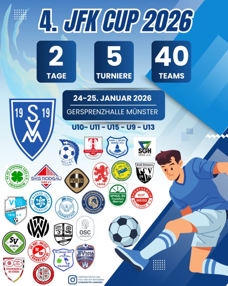 Münster macht sich bereit für ein Wochenende der Extraklasse! Am 24. und 25. Januar 2026 steigt der 4. JFK Cup, und wir können es kaum erwarten, die Halle zum Beben zu bringen. 🚀